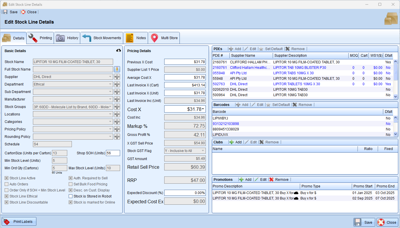 - Under the pharmacy and field you wish to lock, click on the padlock icon