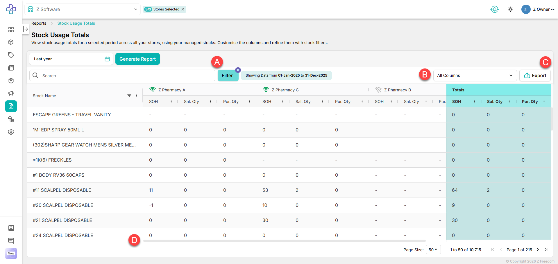 To access the report go to Z Freedom > Reports > Stock Usage Totals: