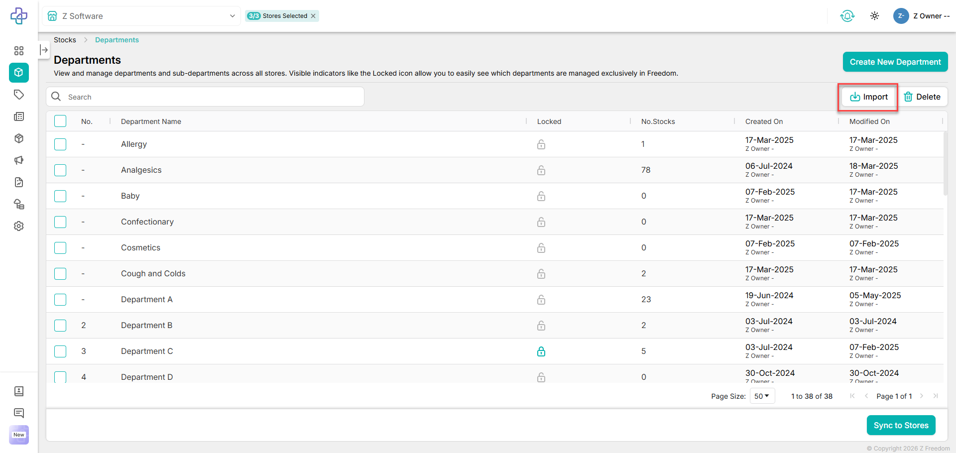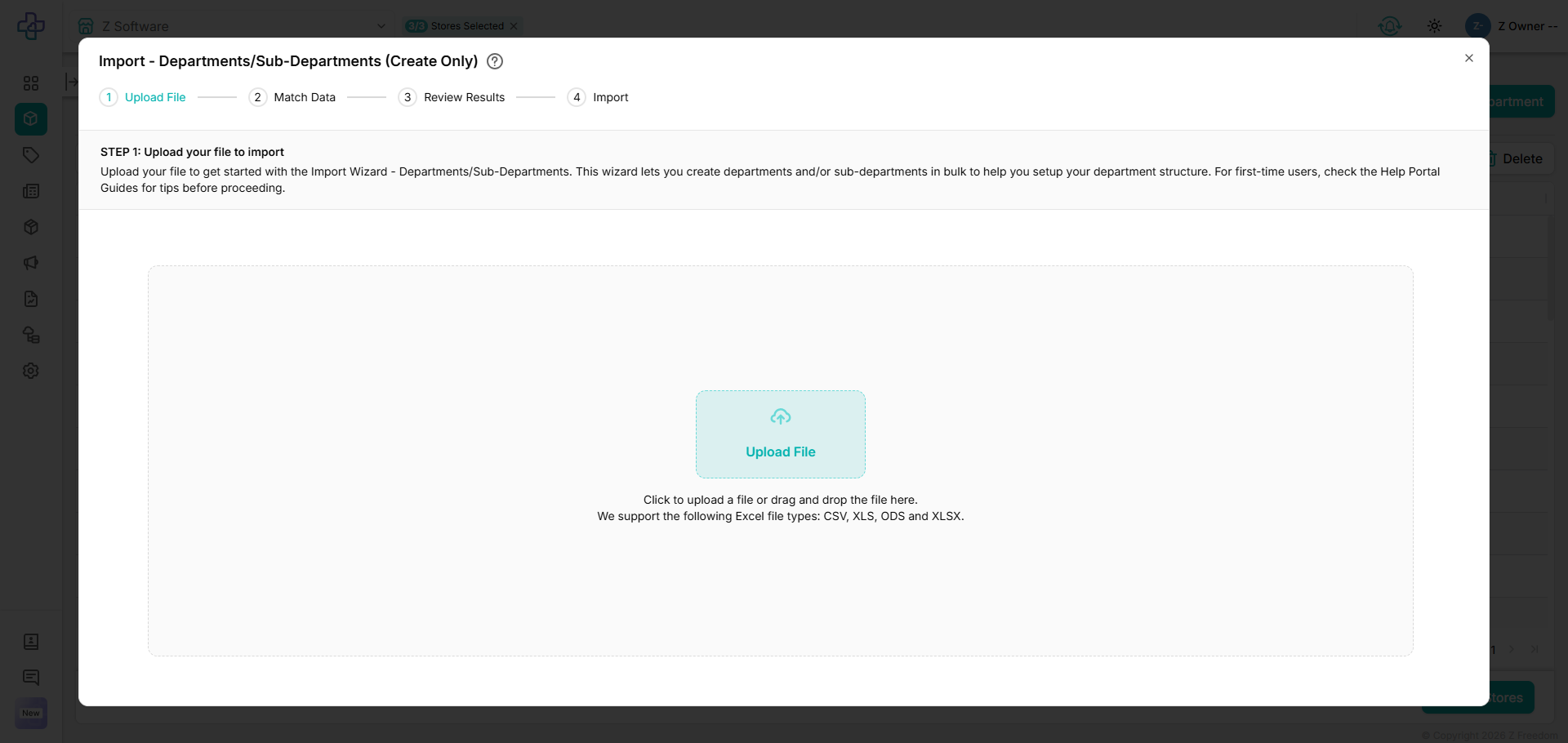 We have added the option to import departments and sub-departments that was previously available in legacy Z Freedom, to help with the onboarding and setup of Z Freedom.