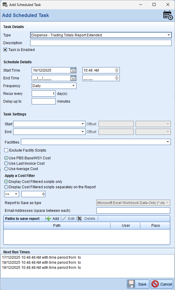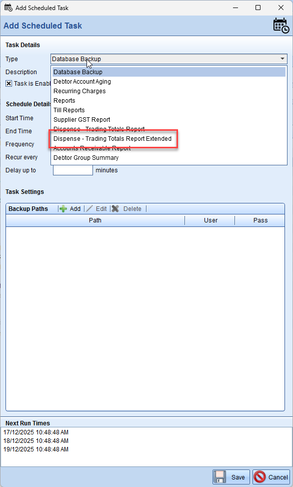 Under the Type dropdown, select the Dispense - Trading Totals Report Extended option: