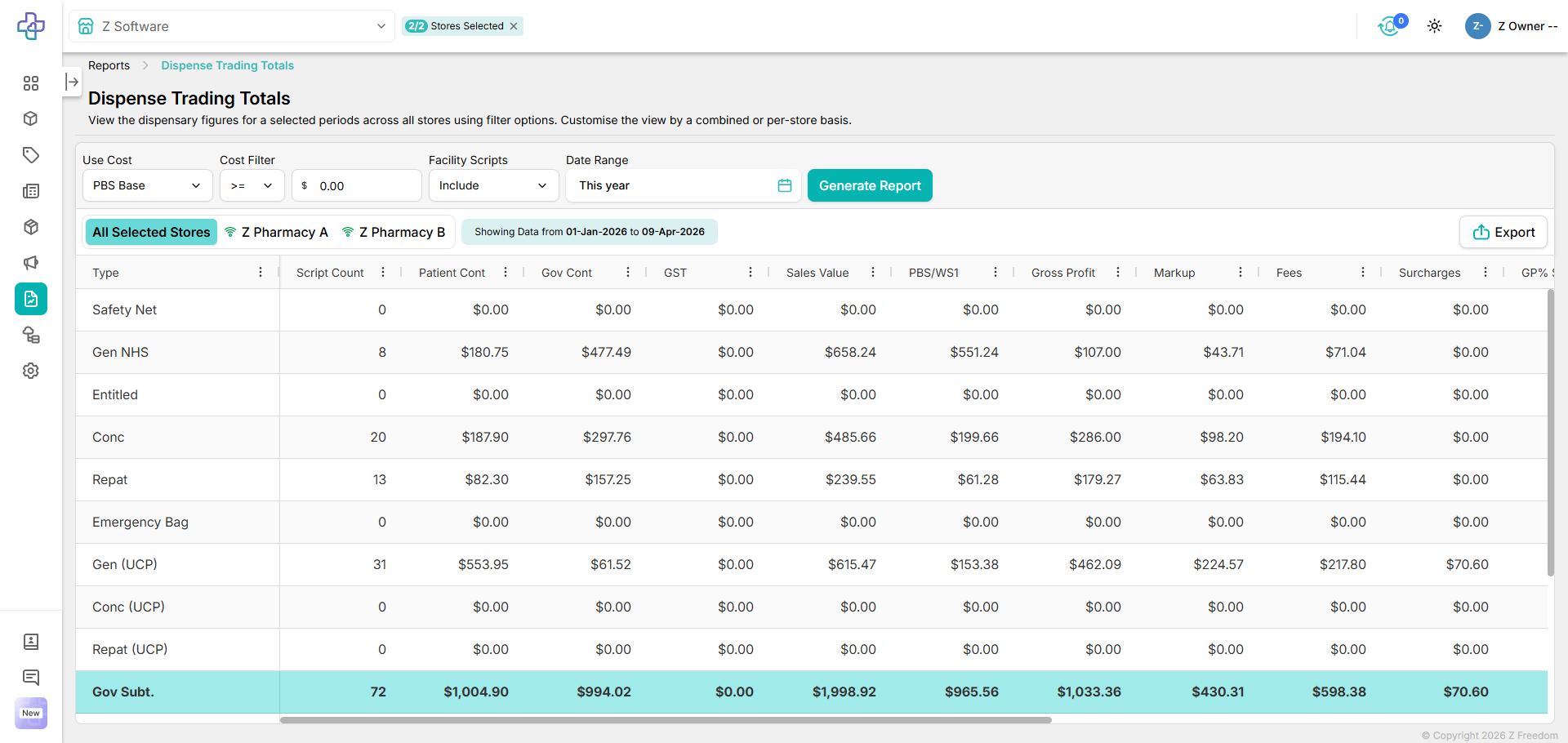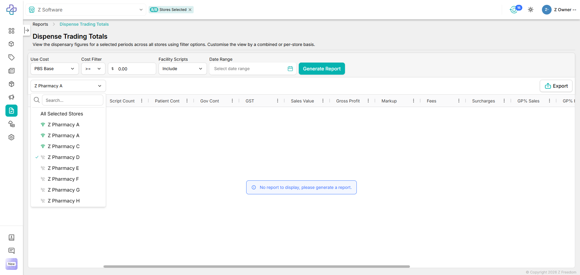 We have updated the Dispense Trading Totals Report to the new look and feel of Z Freedom.